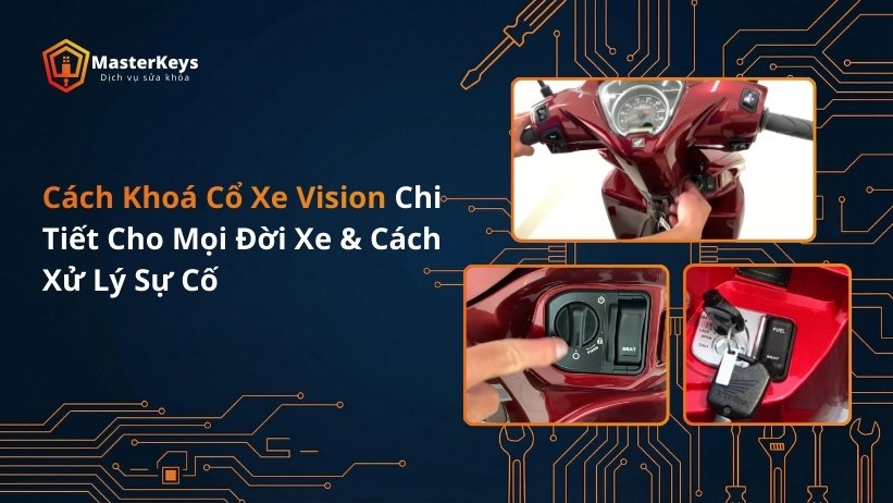 Cách khoá cổ xe Vision là kỹ năng cần thiết cho mọi chủ xe để bảo vệ tài sản. Tại MasterKeys, chúng tôi nhận thấy mặc dù Honda Vision rất phổ biến tại Việt Nam, không phải ai cũng biết cách thao tác đúng, đặc biệt với phiên bản Smartkey mới. Sai sót có thể dẫn đến mất trộm hoặc hỏng ổ khóa. Bài viết này sẽ hướng dẫn chi tiết, cách khắc phục và lời khuyên từ thợ khóa chuyên nghiệp giúp bạn yên tâm bảo vệ xe.